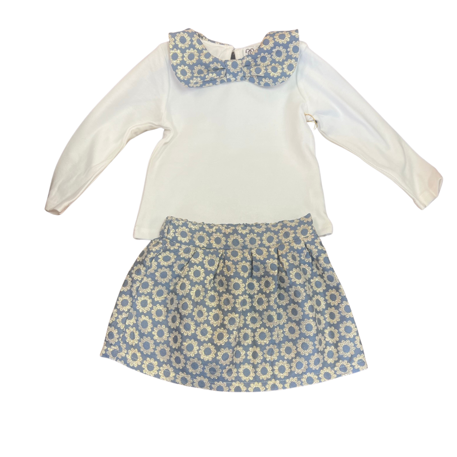 Gold Metallic Floral Collar Shirt with Matching Skirt
