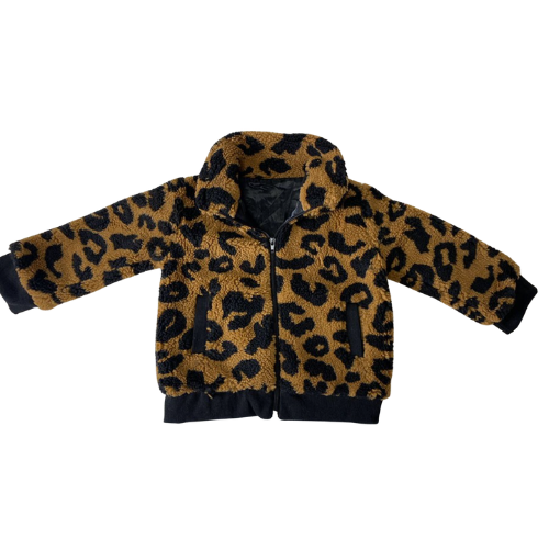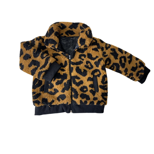 Jacket features black/ brown leopard print with long sleeves, zipper, & pockets. Soft, breathable, stretchy, and comfortable fabric.