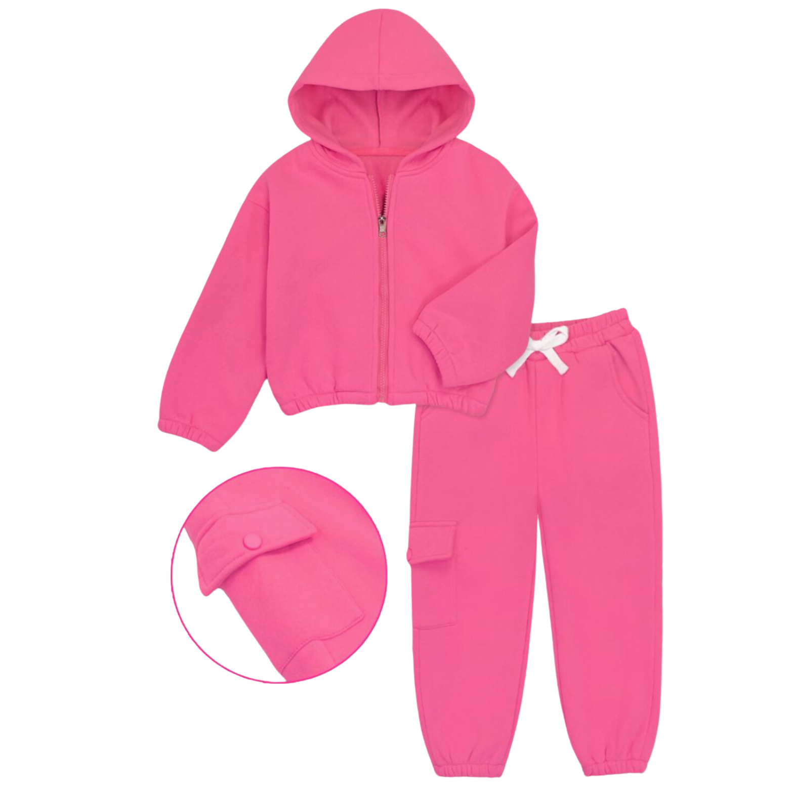 Girls pink 2pc jogger set with zip-up hoodie.