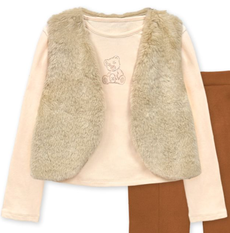 Off-white color rigged long sleeve top with rhinestone bear design