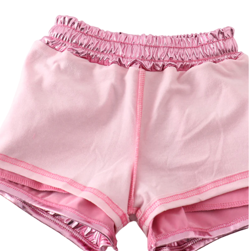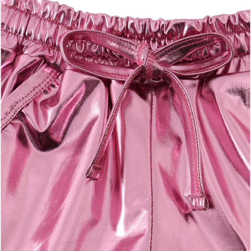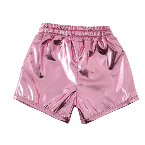 Elevate your wardrobe with the Licorice Luxe Shorts, crafted from 100% polyester for a comfortable, durable fit. Featuring a vibrant pink hue enhanced by a striking metallic laser design.