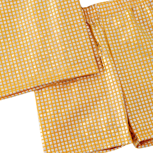 Yellow metallic printed short set