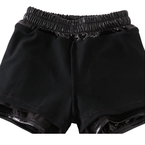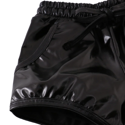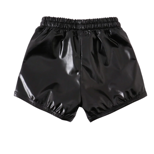 Elevate your wardrobe with the Licorice Luxe Shorts, crafted from 100% polyester for a comfortable, durable fit. Featuring a vibrant black hue enhanced by a striking metallic laser design.