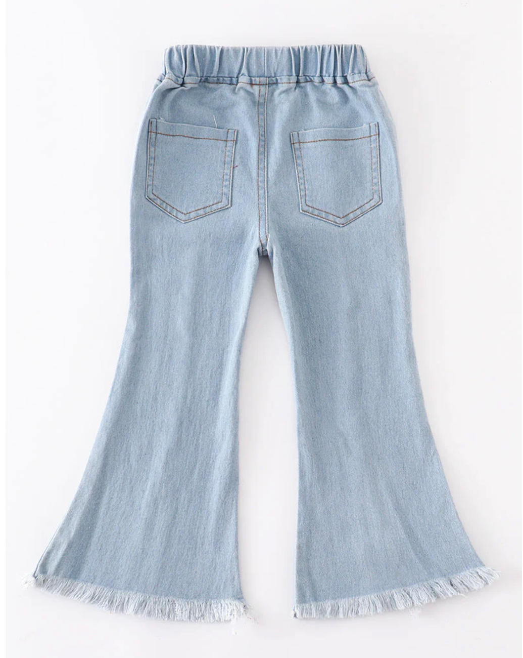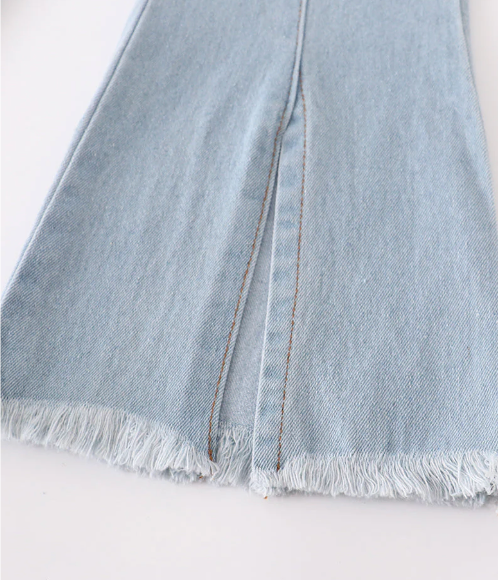 Light Blue Open-Front Denim Wide Leg Denim Jeans