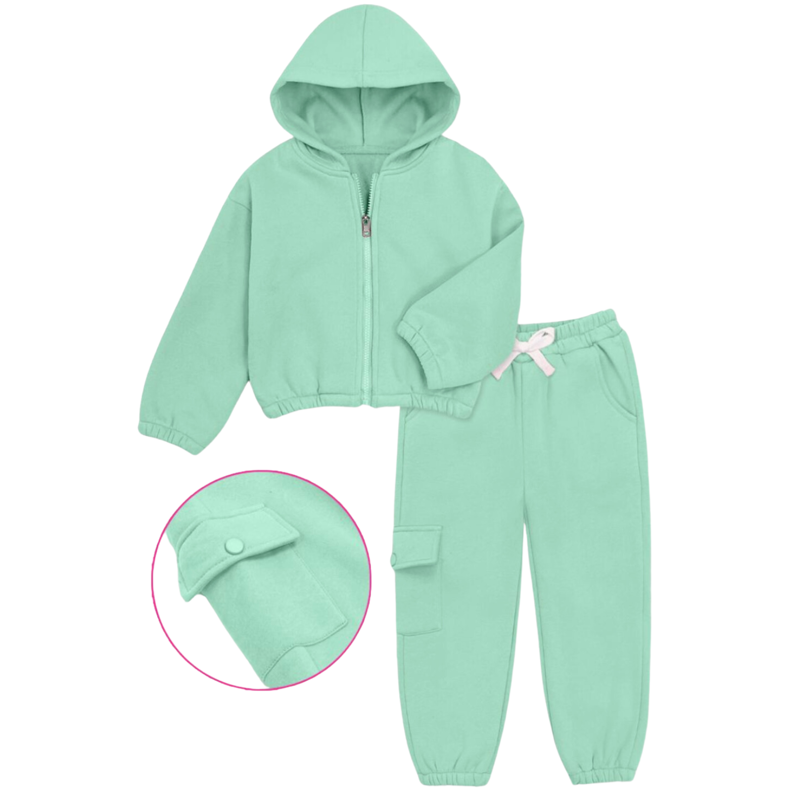 Girls mint color 2pc jogger set with zip-up hoodie.