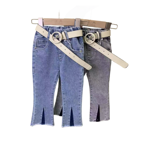 Pull on jeans with split in front. 95%cotton 5%polyester *GREY JEANS*
