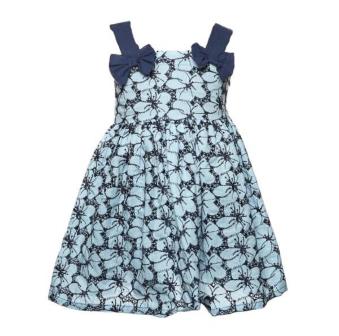 The Petalberry Dress is a charming blue sundress adorned with delicate blue flowers and bow sleeve straps. Crafted with care, this dress offers a playful yet elegant touch to any summer occasion. Bring 50% more style and beauty to your wardrobe with this stunning piece.