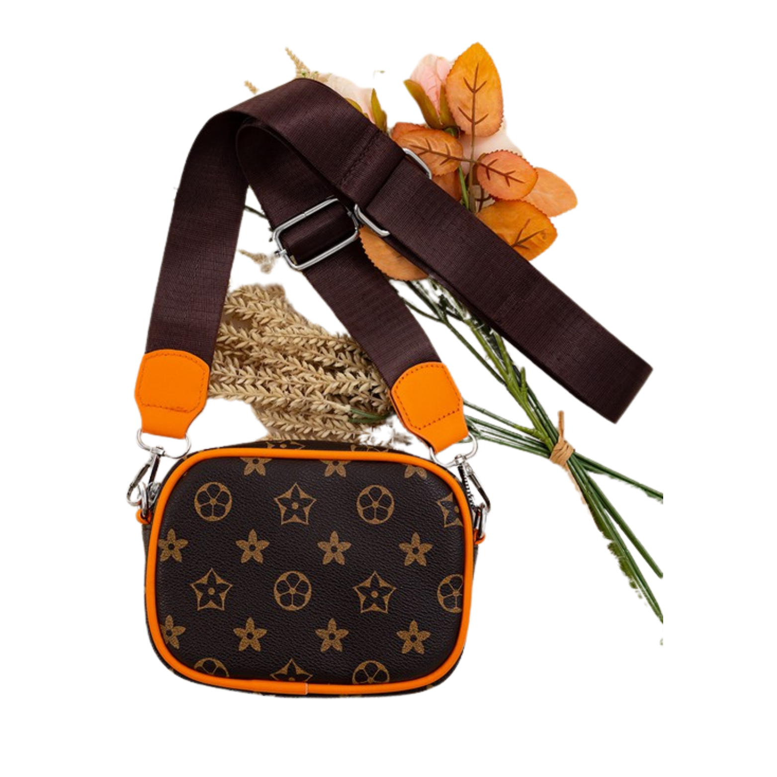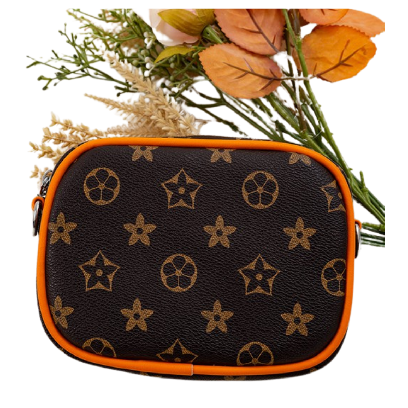 Chocolate Purse with Orange Trim and Chocolate Adjustable Strap