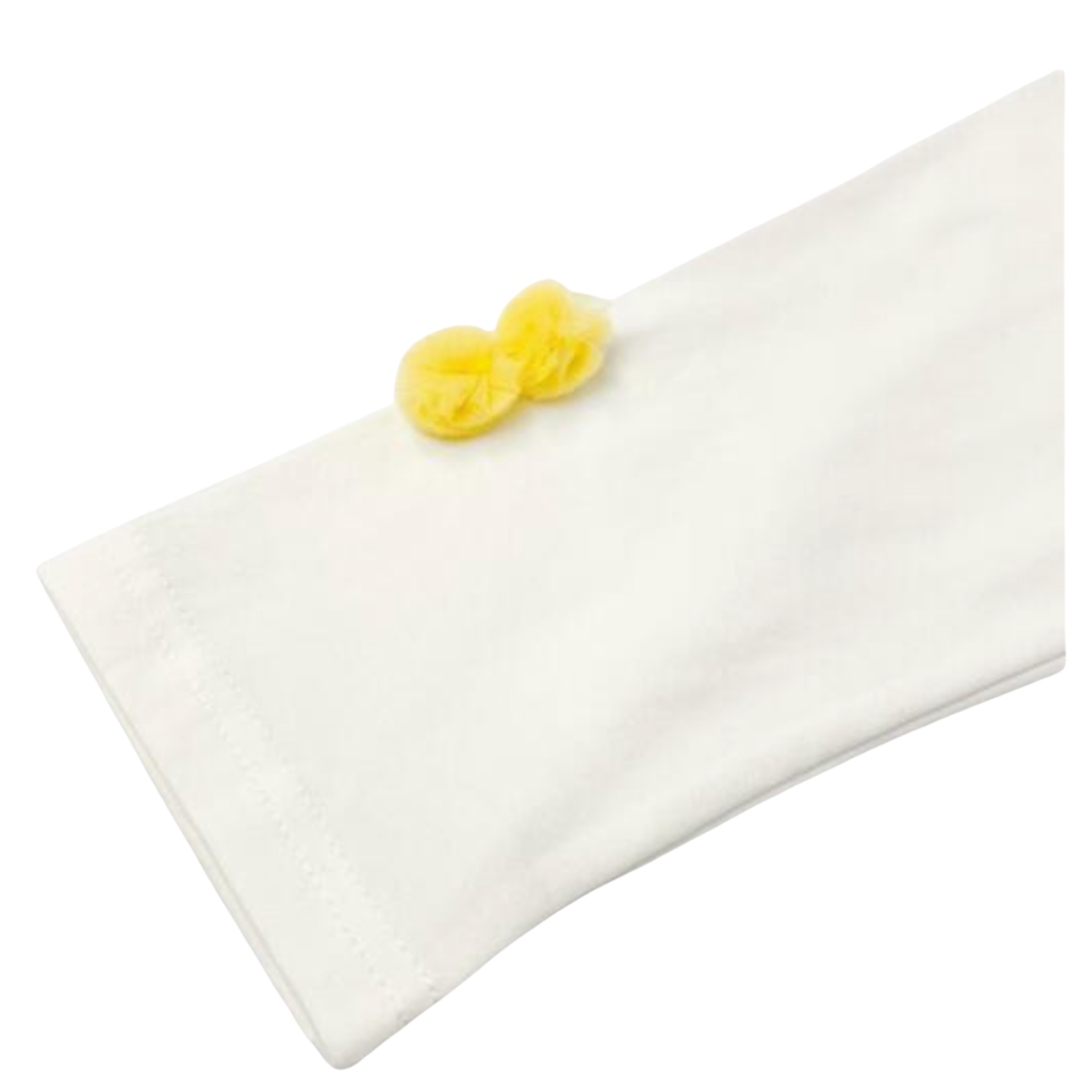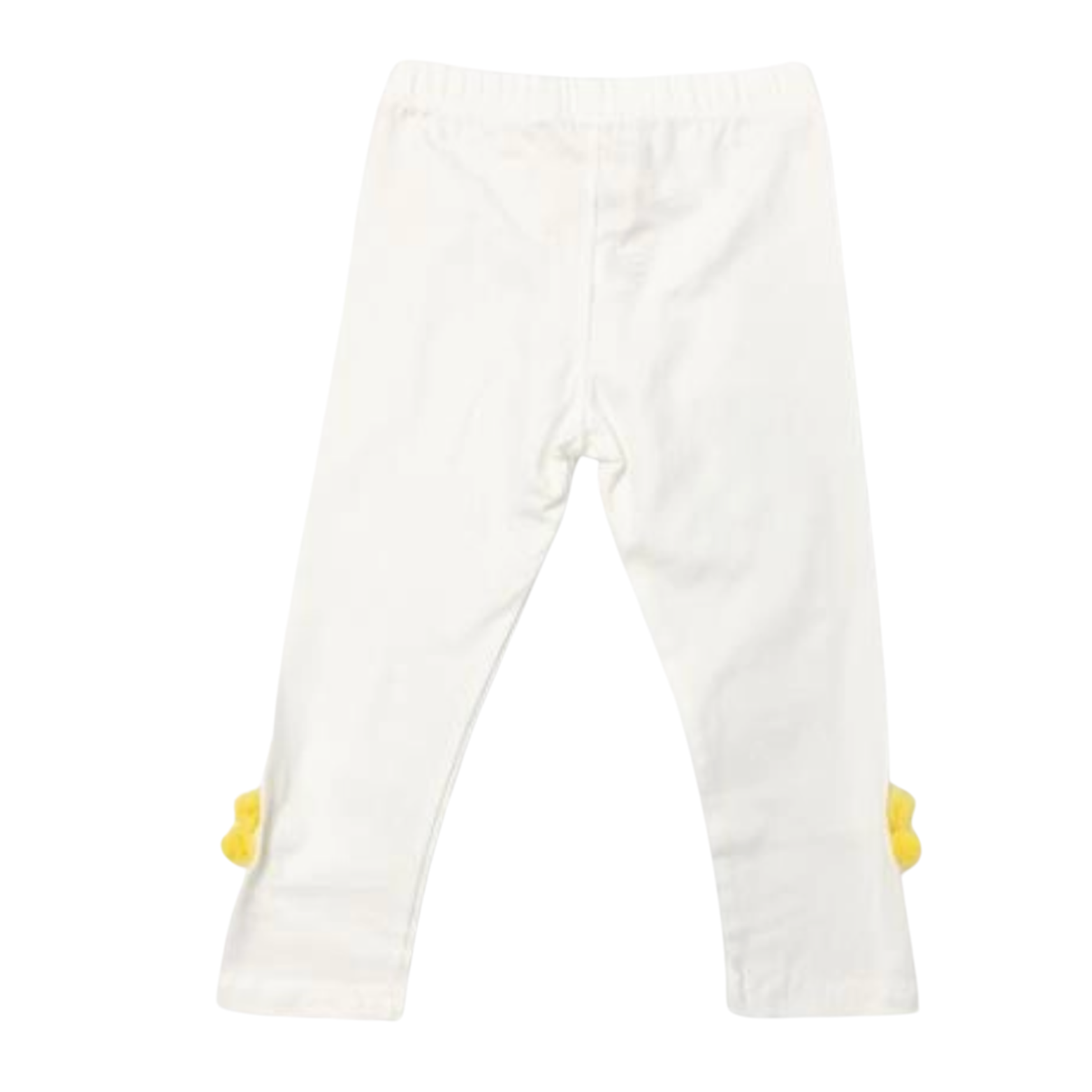 Yellow and white elastic double waist cropped legging with ankle double poms